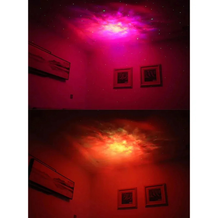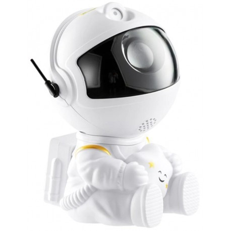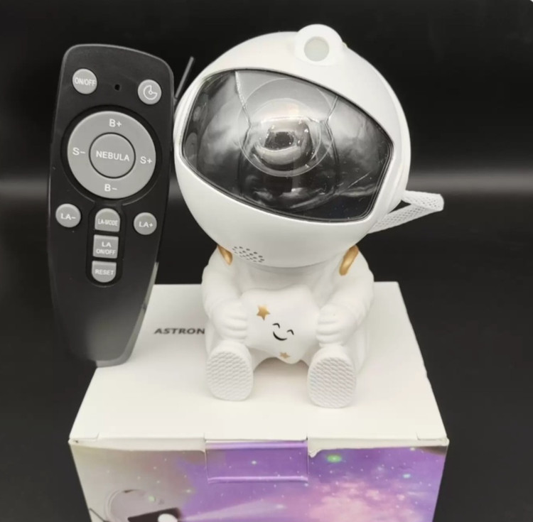 پروژکتور کهکشانی طرح فضانورد نشسته یک چراغ خواب با قابلیت پخش افکت تصویر زنده کهکشانی بر روی سقف و دیوار اتاق است که به همراه افکت لیزر ستاره ای حس یک سفر کهکشانی را قبل از خواب به شما میدهد . تلفیق همزمان تصویر زنده کهکشانی و لیزر ستاره ای جذابیت اتاق خواب شما را چندین برابر میکند . این محصول دارای ریموت کنترل نیز می باشد که میتواند نور پرژکتور یا لیزر را کم یا زیاد و یا برای روشن ماندن محصول تایمر تعریف کنید . برای روشن کردن این محصول باید از آداپتور موبایل استفاده کنید.
