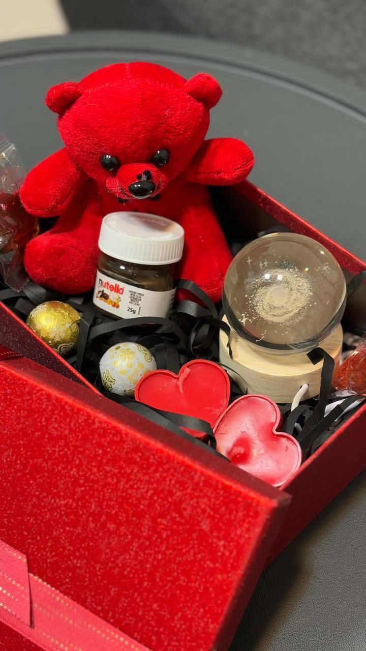 این باکس شامل: خرس،گوی کریستالی، نوتلا،شکلات، شمع قلبی میشود