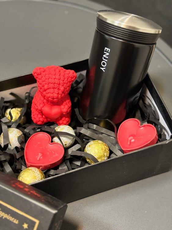 ابن باکس شامل: تراول ماگ، خرس قرمز،شکلات،شمع قلبی میباشد